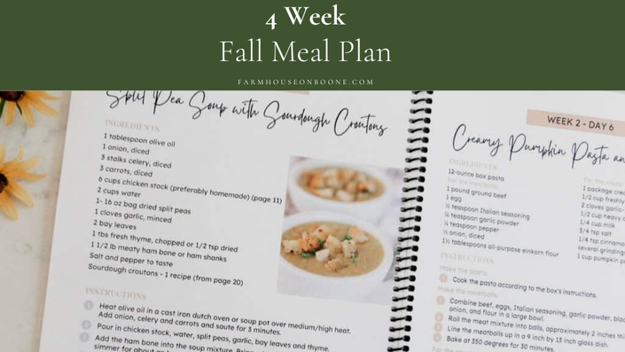 Inside my Fall and Summer Meal Plans, I share 4 weeks-worth of dinner recipes, all utilizing in-season ingredients.